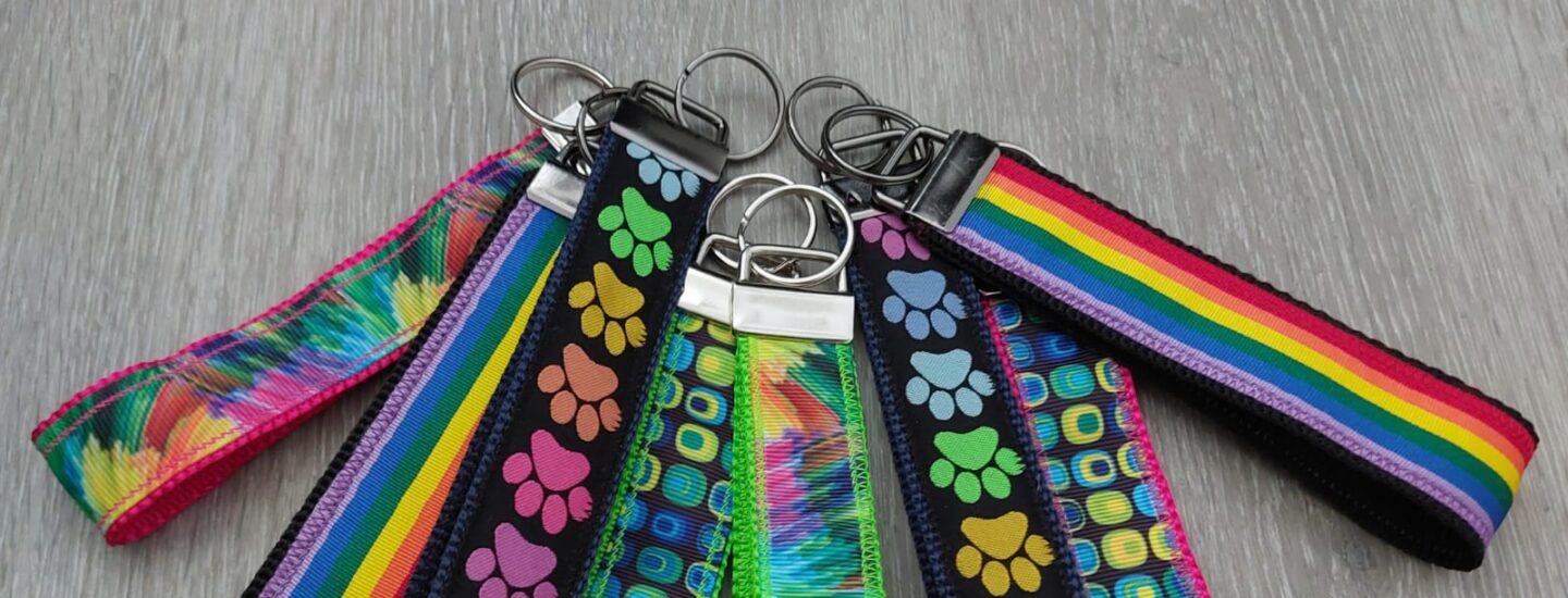 …so wie diese Schlaufen-SchlüsselAnhänger: Ob mit Gurtband und Regenbogen- oder bunten Pfoten-Band oder leuchtendem Ripsband mit Muster oder Pinselstrich-Band verziert… Diese Schlüsselanhänger können, auch dank...